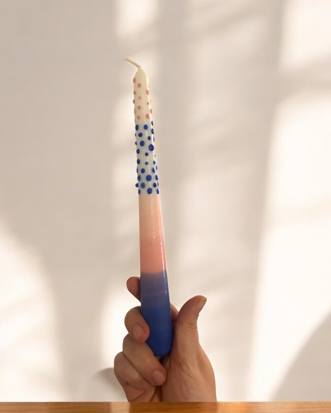 - We zullen 4 dinerkaarsen versieren met een dip- en draaitechniek. We maken 2 bijhorende kandelaars uit acrylhars (ecologisch en veilige soort gips)
